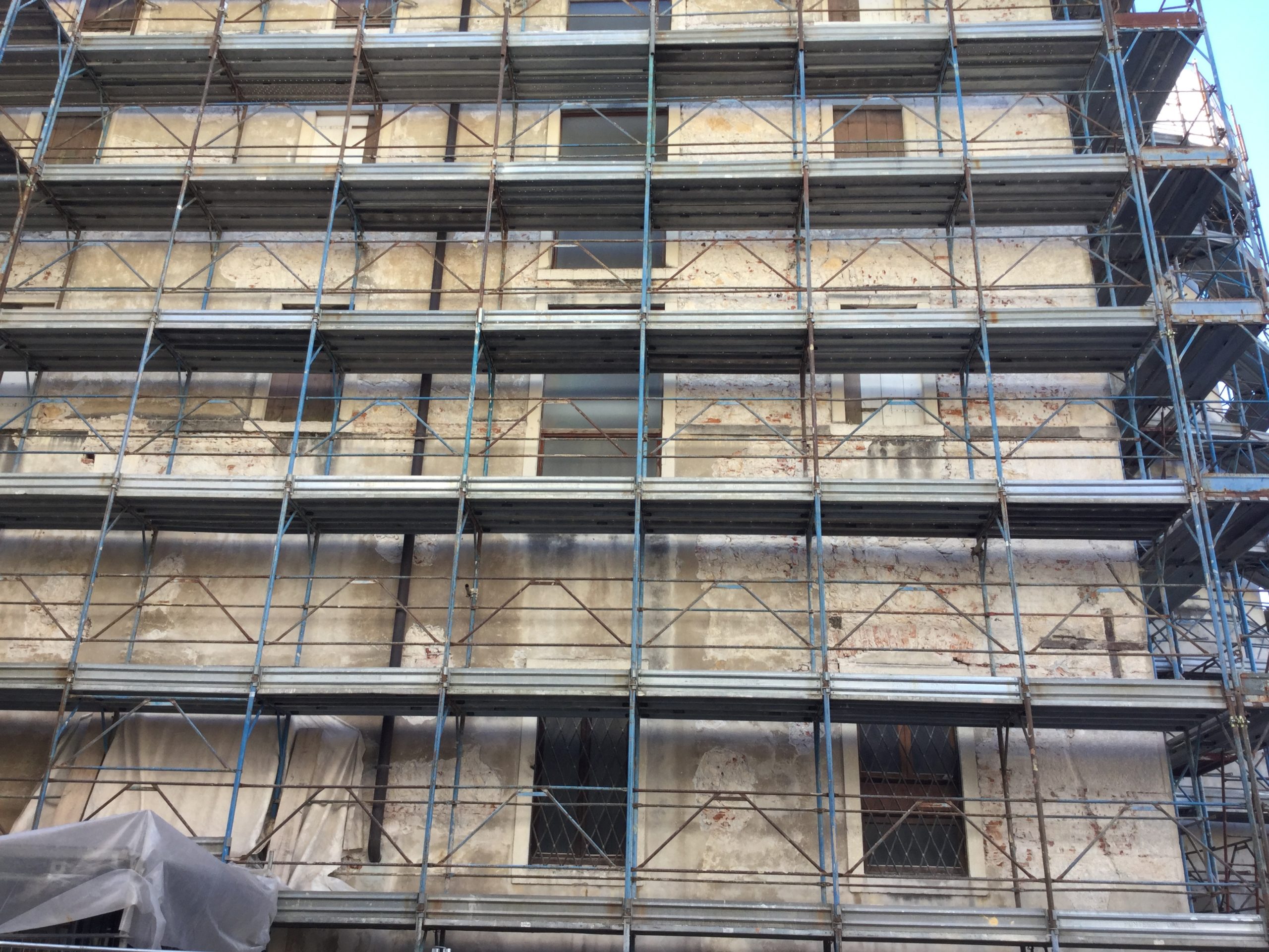- Risanamento delle facciate degli stabili: questo tipo di restauro mira soprattutto alla parte strutturale dell’edificio, all’intonaco e alla sua adesione alla muratura di supporto. In fase di studio strutturale si procede alla rimozione delle parti di intonaco già in fase di distacco e alla loro analisi chimico – fisica. A questo punto si procede al rappezzamento dell’intonaco e alla protezione dello stesso con pittura adeguata;